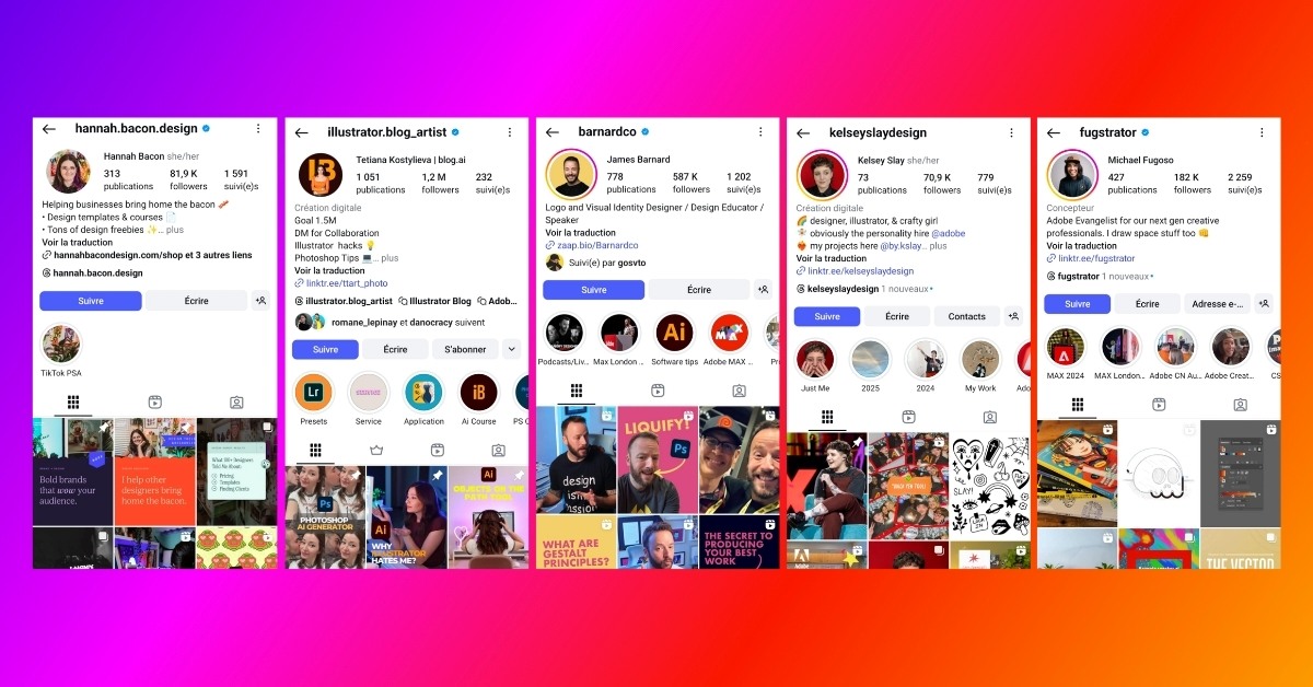 De nombreux comptes Instagram proposent des ressources gratuites pour progresser sur les logiciels de la suite Adobe. Découvrez-en cinq.
