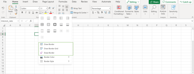 Dans la version en ligne d’Excel, vous pouvez enfin dessiner les bordures d’un tableau (et définir différentes épaisseurs), les grilles à l’intérieur de celui-ci ou les effacer.