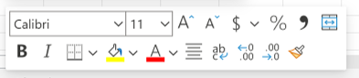Une mini barre d’outils est accessible ultra rapidement par un simple clic-droit dans le tableau. Elle vous donne accès à des fonctions de base de mise en page : police, remplissage, couleur, nombre de décimales après la virgule, etc.