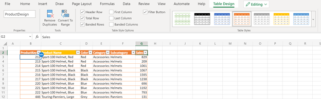 La palette de style personnalisable vous permet de sélectionner la couleur de votre choix, comme par exemple celle de votre entreprise, lors de la mise en page de votre tableau de données.