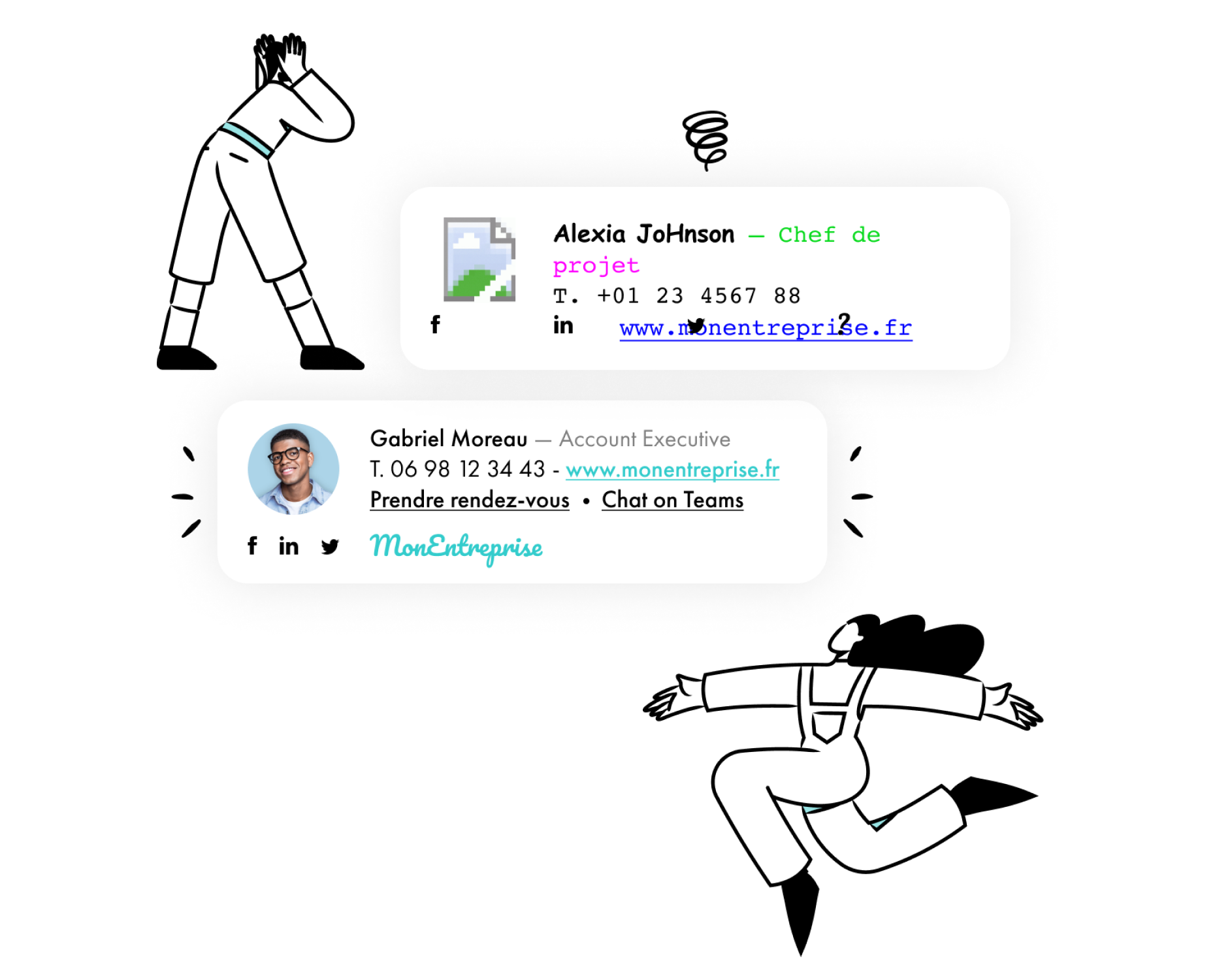 L’un des grands classiques lorsqu’on parle de signatures mail concerne la présence d’informations erronées lorsqu’il n’y a pas de gouvernance en place.