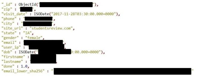 Bob Diachenko, chercheur en cybersécurité, a découvert la semaine dernière une base de données MongoDB dans son plus simple appareil : non protégé par un mot de passe, non chiffré, le fichier expose en texte brut quelques 800 millions d’emails et de données personnelles (âge, sexe, ville, numéro de téléphone, mais aussi données financières et comptes de réseaux sociaux liés à l’adresse mail). Ces données sont réparties dans trois documents différents :