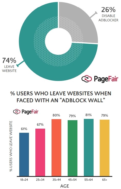 - 74% des utilisateurs quittent les sites qui bloquent les adblockers.