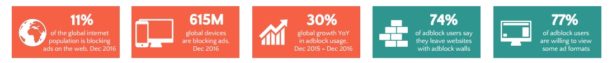- 30%, c’est la croissance de l’usage des adblockers en 2016.