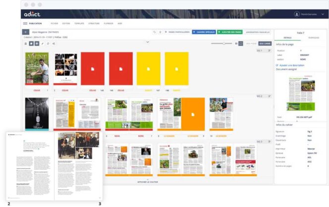 Cet outil simplifie la gestion et la production des publications. Il permet d’assurer un suivi complet de ses créations en temps réel, du chemin de fer jusqu’à la livraison de PDF certifiés à l’imprimeur ou en vue d’une diffusion digitale, en passant par la conception des maquettes. « Adiict Chemin de Fer offre une vision globale du support, au fur et à mesure de leur production. C’est un bon moyen de pouvoir suivre l’avancée de la création de ses supports au fil de l’eau », ajoute l’ingénieur commercial.