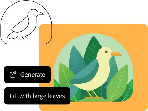 - Remplissage génératif de forme : cette fonctionnalité, encore en expérimentation, permet d’ajouter rapidement des vecteurs détaillés aux formes grâce à de simples prompts à entrer dans la barre des tâches contextuelle.