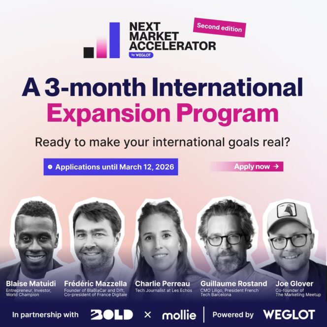 Weglot, entreprise à l’origine d’un outil de traduction de sites web utilisé par plus de 45 000 clients dans le monde, organise la seconde édition de son programme d’expansion internationale, baptisé Next Market Accelerator. Une initiative de trois mois visant à accompagner des entreprises B2C suffisamment matures et prêtes à franchir le cap de l’international, grâce à un encadrement expert et un cadre conçu pour accélérer la prise de décision.