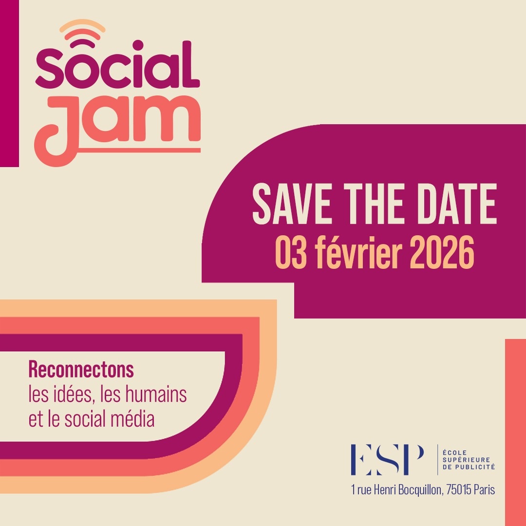Vous souhaitez participer à cette première édition de Social Jam, en partenariat avec BDM, pour reconnecter humains, idées et plateformes ? C’est très simple : rendez-vous sur la billetterie officielle de l’événement en cliquant sur le bouton S’inscrire. Comptez 79 € pour réserver votre place pour cet événement, qui se déroulera mardi 3 février 2026, à partir de 9 heures, dans les locaux de l’École Supérieure de Publicité (ESP), à Paris.