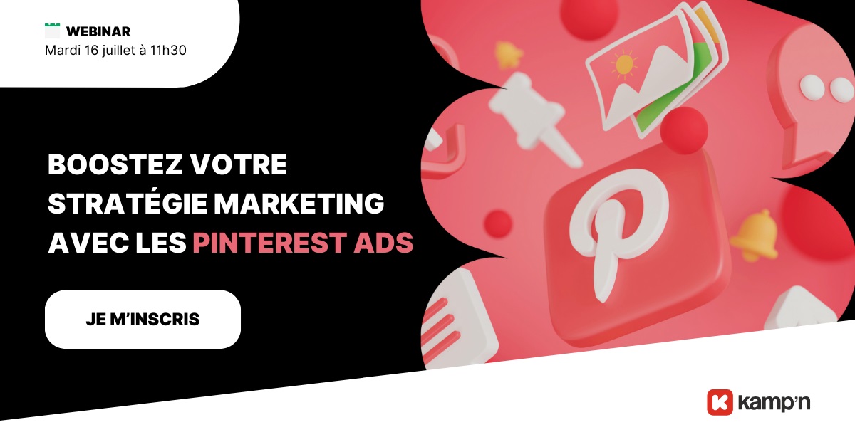 Pour répondre à vos questions et en apprendre plus sur ce sujet, l’agence Kamp’n vous invite à son prochain webinar dédié à Pinterest Ads, mardi 16 juillet à 11h30. L’objectif : vous aider à optimiser vos campagnes publicitaires sur la plateforme en bénéficiant des précieux conseils des experts de l’agence spécialisée en SEA, social ads et display.