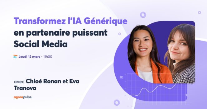 Vous souhaitez dépasser l’utilisation standard de l’IA et en faire un véritable partenaire pour améliorer votre gestion des réseaux sociaux ? Inscrivez-vous dès maintenant au webinar organisé par Agorapulse, jeudi 12 mars 2026 à 11h (durée : 1h). Pour cela, c’est très simple : rendez-vous sur la page officielle de l’événement en cliquant sur le bouton « S’inscrire gratuitement », puis renseignez vos coordonnées. Une rediffusion sera disponible pour les inscrits. Bon webinar !