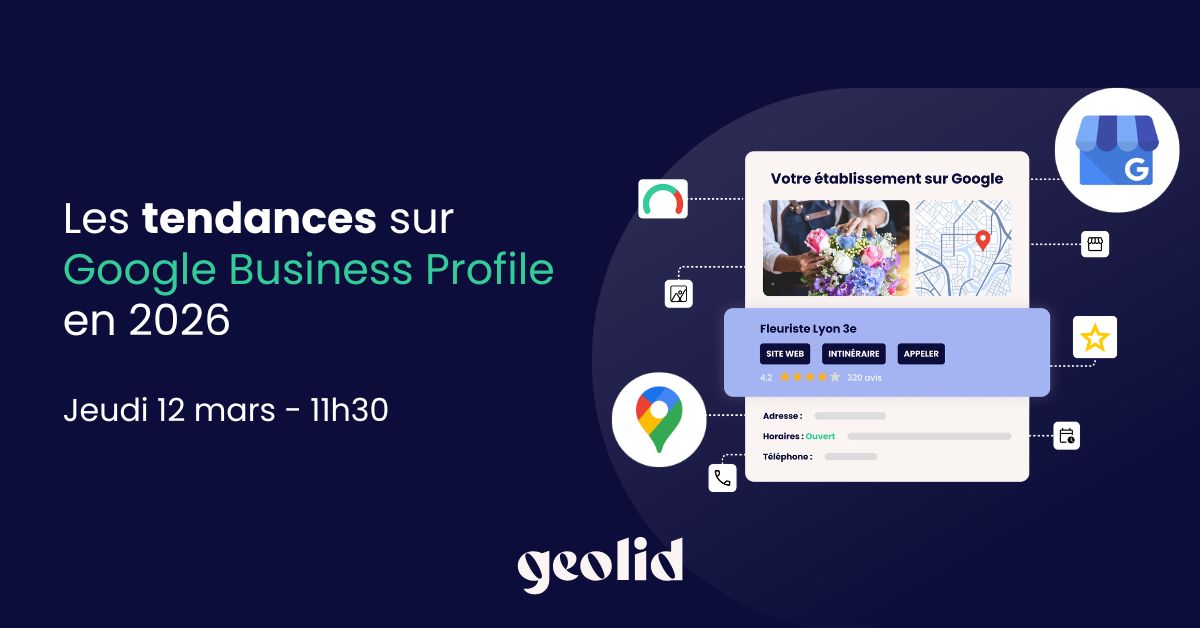 De l’importance croissante des avis clients à l’évolution des attentes des consommateurs français, les règles du jeu du marketing local se réécrivent. Dans ce contexte, Google Business Profile s’impose comme un levier stratégique pour les réseaux d’enseignes. Pour y voir plus clair et vous guider dans votre démarche, Geolid, plateforme marketing dédiée aux réseaux d’enseignes, organise un webinar dédié aux tendances qui façonnent la visibilité locale cette année.