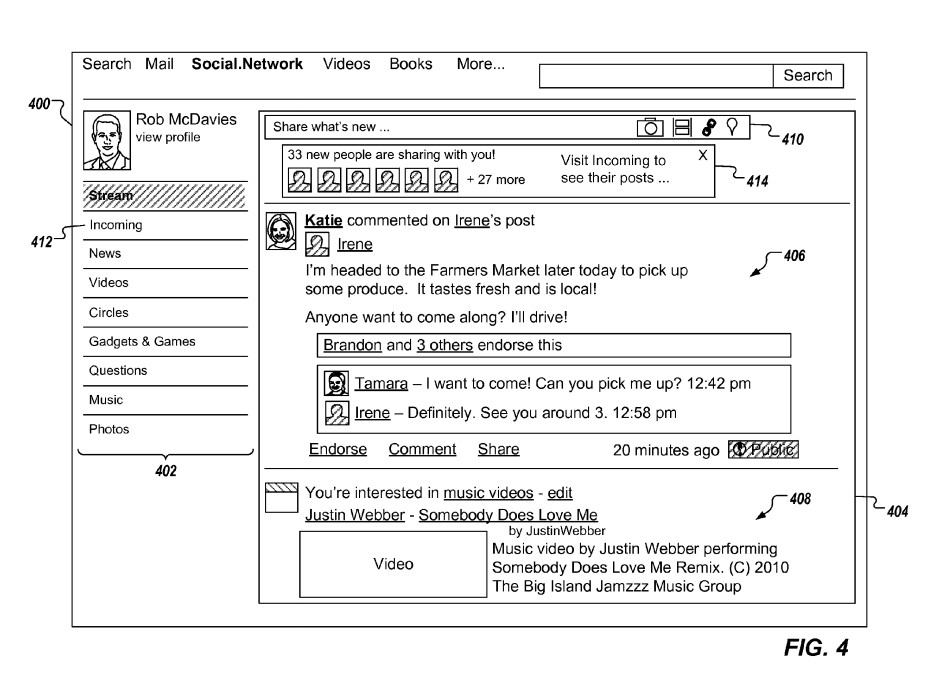 Google fournit quelques images pour schématiser son brevet (ci-après). Pensez-vous qu’un algorithme permettant de filtrer automatiquement les contenus affichés sur Google+ soit une bonne chose ?