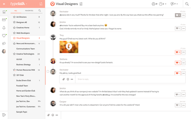 À l’image de Slack, Typetalk est gratuit uniquement dans une certaine limite, plutôt restreinte. Le coût de l’application peut aller jusqu’à 150$/mois pour un pack beaucoup plus complet. Inviter des gens à rejoindre un canal est assez simple, il suffit de les ajouter manuellement (ajouter directement leur profil s’il est déjà créé ou leur envoyer un e-mail pour les inciter à créer un compte pour rejoindre le canal.
