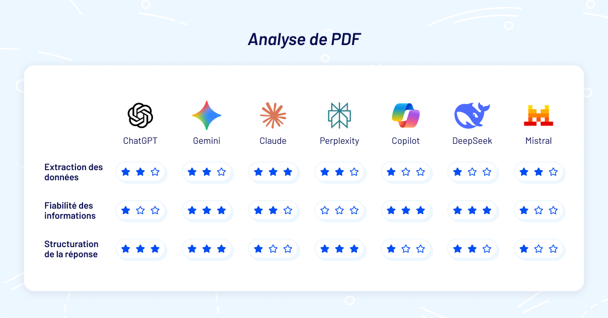 Analyse de PDF : BDM a comparé ChatGPT, Gemini, Claude, Perplexity, Copilot, DeepSeek et Le Chat