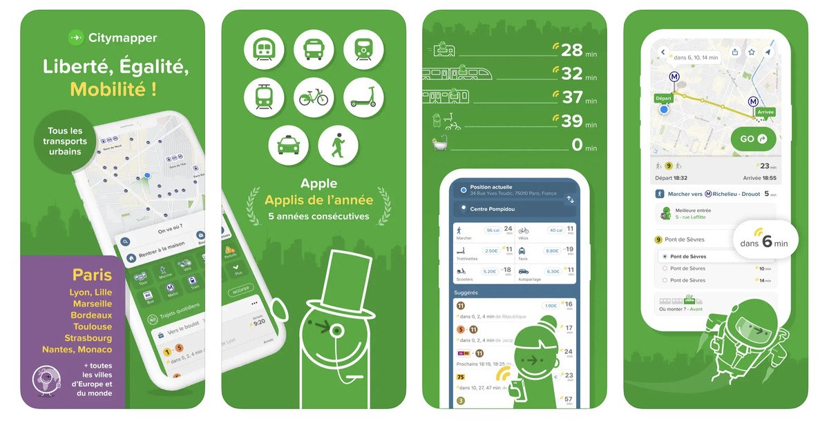 Citymapper est une autre application de carte qui est spécialisée dans les déplacements urbains et les calculs d’itinéraire en transport en commun. L’objectif de l’application est de dénicher le meilleur itinéraire possible, en comparant les différents moyens de transport et le trafic en temps réel. Il vous suffit de sélectionner la ville de votre choix, pour accéder à la carte associée.