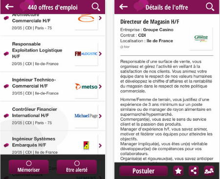 Nous proposons en effet pour tous vos recrutement une application iPhone et iPad. Si vous cherchez à recruter spécifiquement en région parisienne, vous pouvez aussi utiliser l’application ParisJob, elle aussi disponible sur iPhone et iPad.