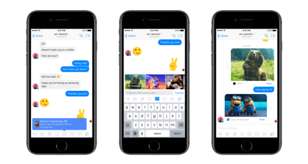 Il y a des images qui valent tous les mots du monde, et pour illustrer un propos, rien de tel qu’un GIF animé ! Dans Messenger, vous pouvez avoir accès à toute une bibliothèque de GIF. Pour en ajouter un à votre conversation : sur iOS, cliquez dans le petit « + » en bas à droite, vous aurez la possibilité de rechercher des GIF dans la base de données ou alors utiliser une extension du célèbre site Giphy ! À vous de jouer 🙂