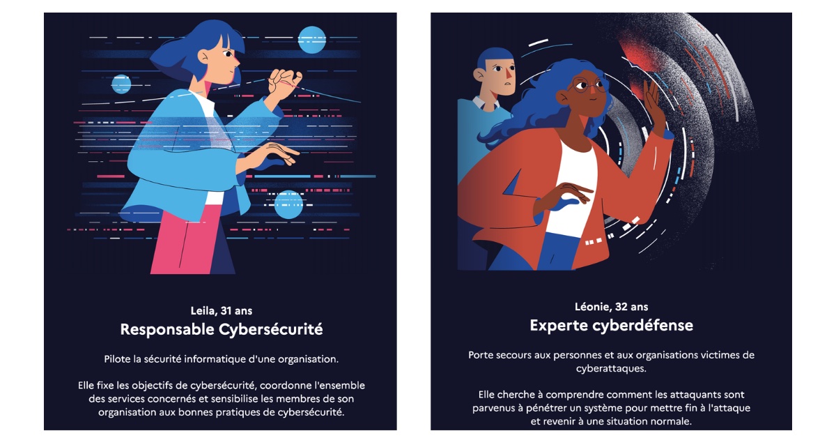 Pour cela, il faut stimuler l’attractivité : « On va travailler avec les médias, les réseaux sociaux, pour déconstruire les préjugés. On réfléchit par exemple avec Radio France pour mettre en avant des role models, qui ne sont pas des hommes blancs avec des capuches et des lignes de code. On a des profils féminins, issus par exemple de reconversions, avec des histoires qu’il faut mettre en avant pour prouver que ces métiers sont accessibles à toutes et tous. » La campagne Demain spécialiste cyber répond également à cet enjeu, avec un site internet et des affiches mettant en valeur des profils variés, dans le but, là aussi, de casser les préjugés.