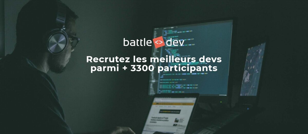 La Battle dev est un concours de code qui attire plus de 3 000 développeurs à chaque édition. Ils ont 2 heures pour résoudre des exercices de développement en mobilisant leurs compétences. Le goût du challenge attire les participants, mais pas seulement : s’ils sont à l’écoute des opportunités, ils peuvent l’indiquer et proposer leur CV. Les entreprises partenaires de la Battle dev peuvent alors contacter les profils qui leur correspondent le mieux, consulter leur CV et visualiser leurs performances.