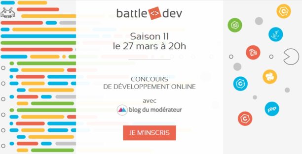 La Battle Dev est de retour le 27 mars prochain à 20 heures ! Ce grand concours de code rassemble à chaque édition plusieurs milliers de développeurs prêts à s’affronter. Vous aurez 2 heures pour répondre à 6 exercices de plus en plus difficile à résoudre. La Battle Dev vous permettra de vous faire repérer par un employeur potentiel, mais aussi de gagner de nombreux lots !