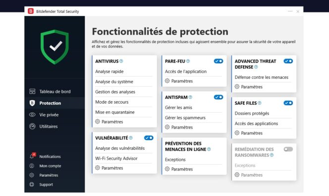 Sur desktop, Bitdefender couvre toutes les failles de sécurité potentielles :