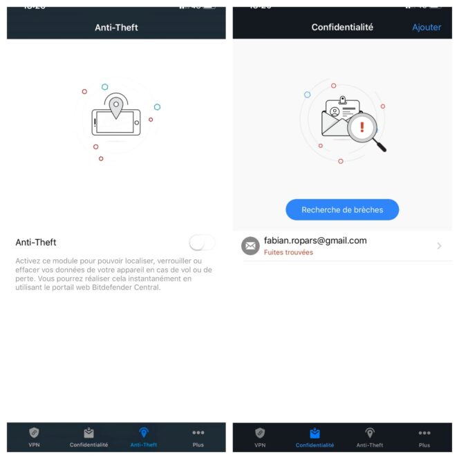 Dans sa volonté de protéger tous les devices, Bitdefender est aussi présent sur iOS et Android via des apps dédiées. Une fois installées elles permettent notamment de localiser le téléphone volé et d’effacer son contenu.