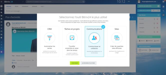 Très concrètement, Bitrix va vous permettre de gérer des pans entiers de votre vie professionnelle. Tour d’horizon des différentes fonctionnalités de la plateforme.