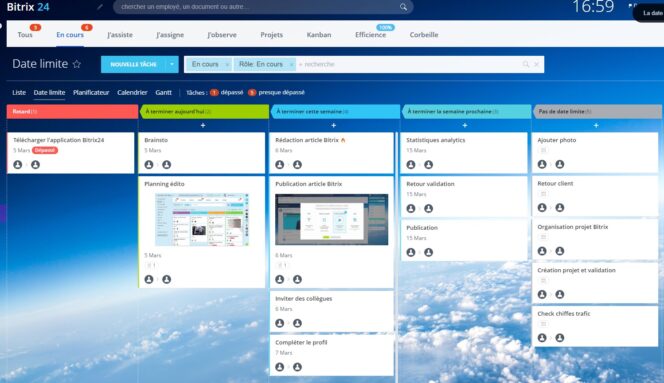 La plateforme limite habituellement sa version gratuite à nombre limité d’utilisateurs (12). Avec les très forts besoins en travail à distance et pour aider la réorganisation induite par le Coronavirus, Bitrix a décidé d’offrir sa plateforme gratuitement pour un nombre illimité d’utilisateurs. Une excellente nouvelle qui vous permettra de gérer efficacement la planification du travail de vos équipes.