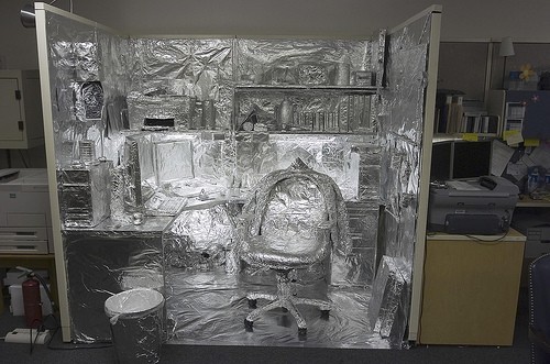 Et si votre boss est en vacances, qu’il a le sens de l’humour, et que vous avez 50 paquets de cacahuètes en mousse, voilà ce que vous pouvez lui réserver :