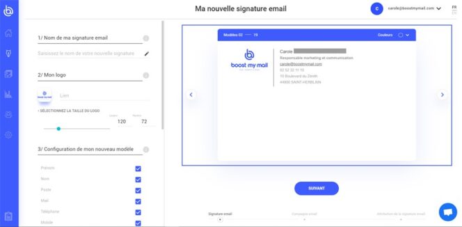 - Enfin, sur la partie droite de l’écran, faites défiler les modèles de signatures emails et sélectionnez-en un. Boost My Mail propose 15 modèles au total.