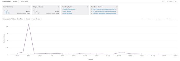 Nous avons choisi d’analyser la requête « Nutella » dans nos différents Dashboard afin d’être confronté à une campagne sociale avec un fort volume. Cela permet de se rendre compte de la puissance de l’outil.