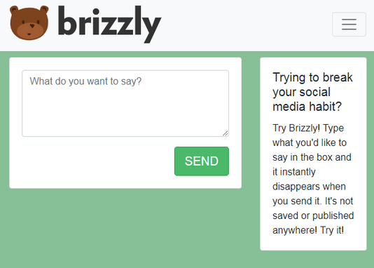 Brizzly est une interface de publication. Cet outil date de 2009, et a même été racheté par AOL avant d’être abandonné en 2012. Il retrouve une seconde vie aujourd’hui en devenant un outil de désintoxication aux réseaux sociaux. Le principe est aussi marrant qu’inutile : vous écrivez un post, vous le postez, mais ce dernier disparaît instantanément et ne sera vu par personne. L’interface est quasiment la même que Twitter, sauf que personne ne peut vous suivre, ni vous lire.