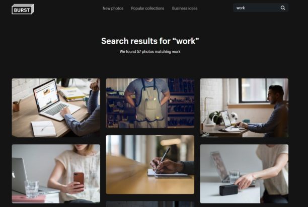 Burst ne révolutionne pas le genre, mais offre des photos d’excellente qualité. Si vous cherchez des mises en situation bien faites avec un grain professionnel et moderne, le moteur de recherche devrait vous plaire. Les photos sont classées par « Collections » (laptop, café, travail…) ou accessibles par le moteur de recherche.
