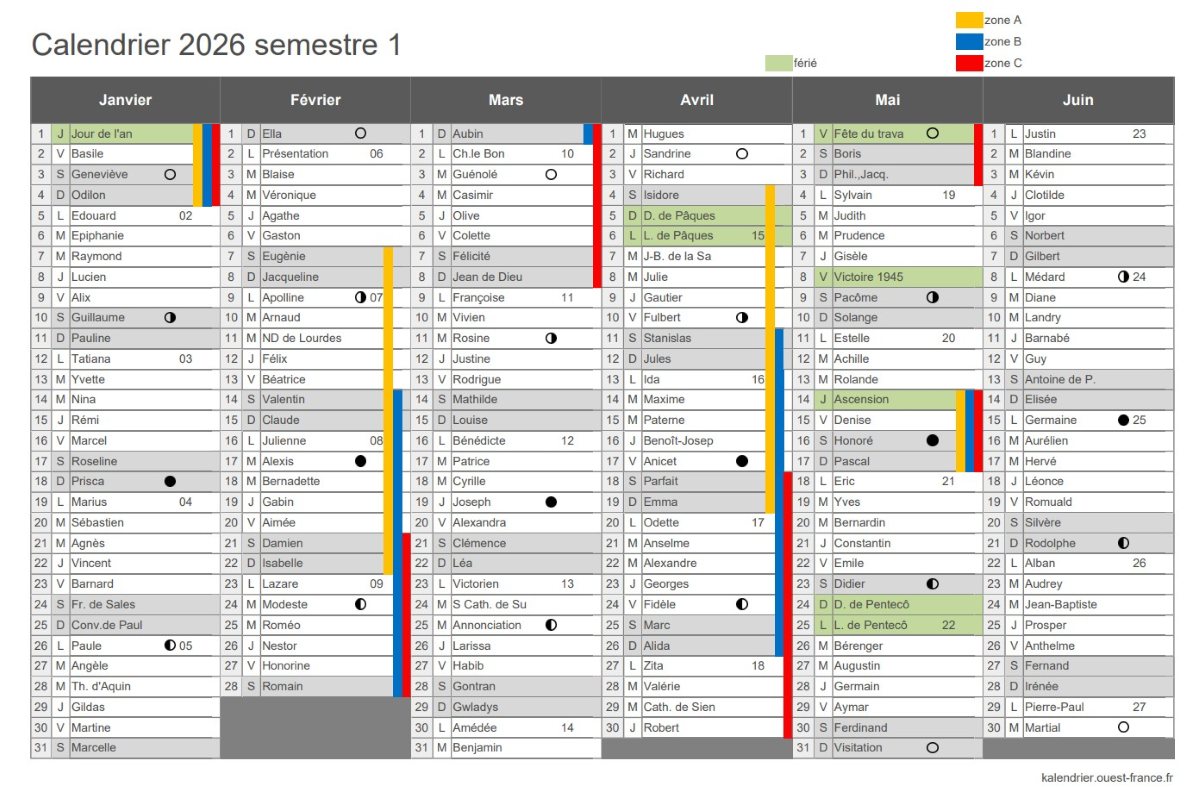 En 2026, les dates des vacances scolaires sont les suivantes :