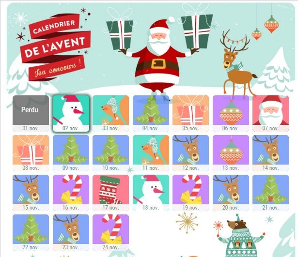 Bientôt Noël, le froid, les décorations, les catalogues de jouets, les sapins… et les calendriers de l’avent. Nous vous proposons aujourd’hui un jeu organisé avec ReflexeMedia pour gagner 24 concours Facebook calendriers de l’avent. Chaque calendrier vaut 35 euros, et peut être installé sur votre page Facebook. A quelques semaines du 1er décembre, c’est le bon moment pour réfléchir et mettre en place vos animations social media. Pour jouer, rien de plus simple, il suffit de se rendre sur ce lien et de cliquer sur la vignette du jour. Chaque jour jusqu’au 24 novembre un gagnant sera désigné, et nous lui offrirons un calendrier de l’avent ReflexeMedia.