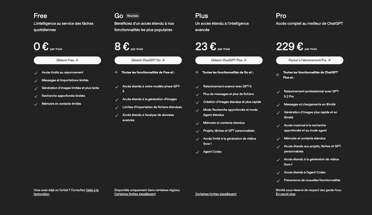 ChatGPT Plus, Go, Pro : quelles différences avec la version gratuite ?