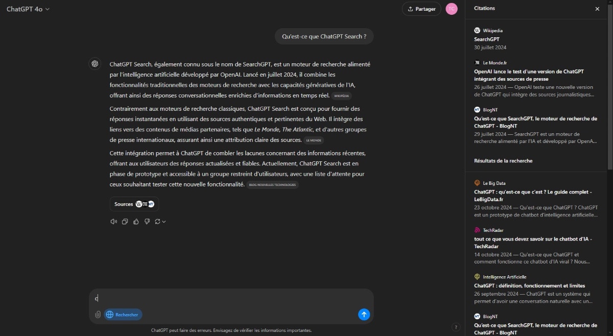 Actuellement, ChatGPT Search est disponible pour les utilisateurs ayant souscrit à un plan payant, mais les utilisateurs de la version gratuite pourront y accéder dans les prochains mois.