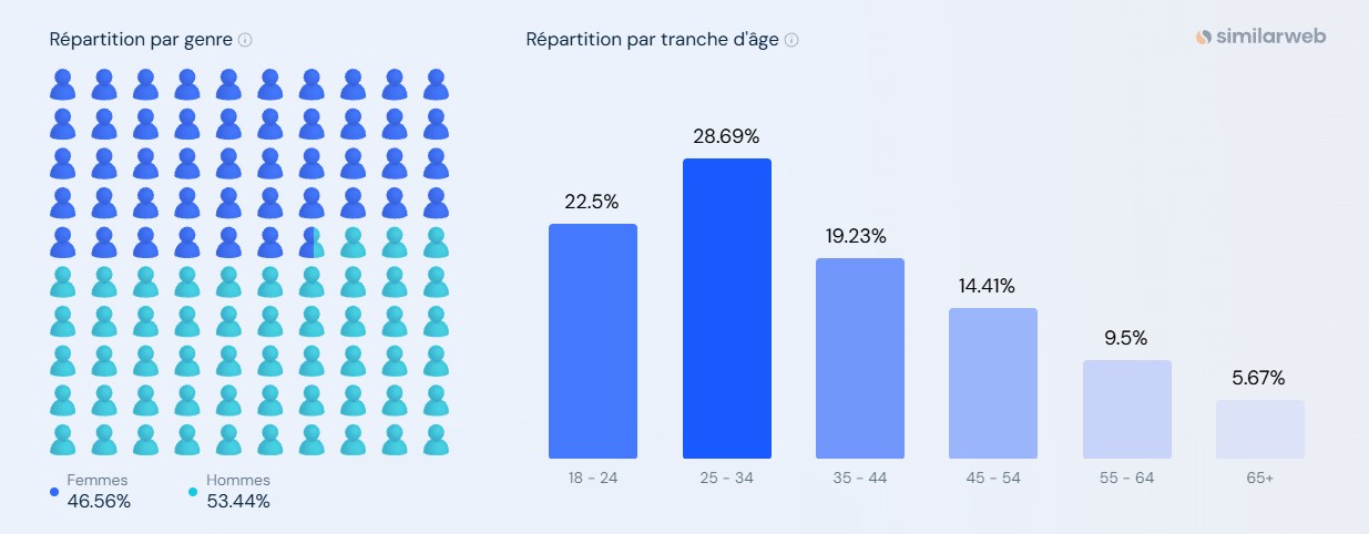 - 53,4 % des utilisateurs de ChatGPT sont des hommes, contre 45,6 % de femmes.