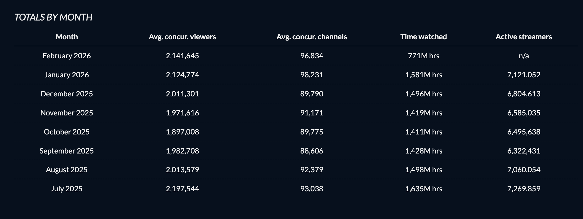 Chiffres Twitch – 2026