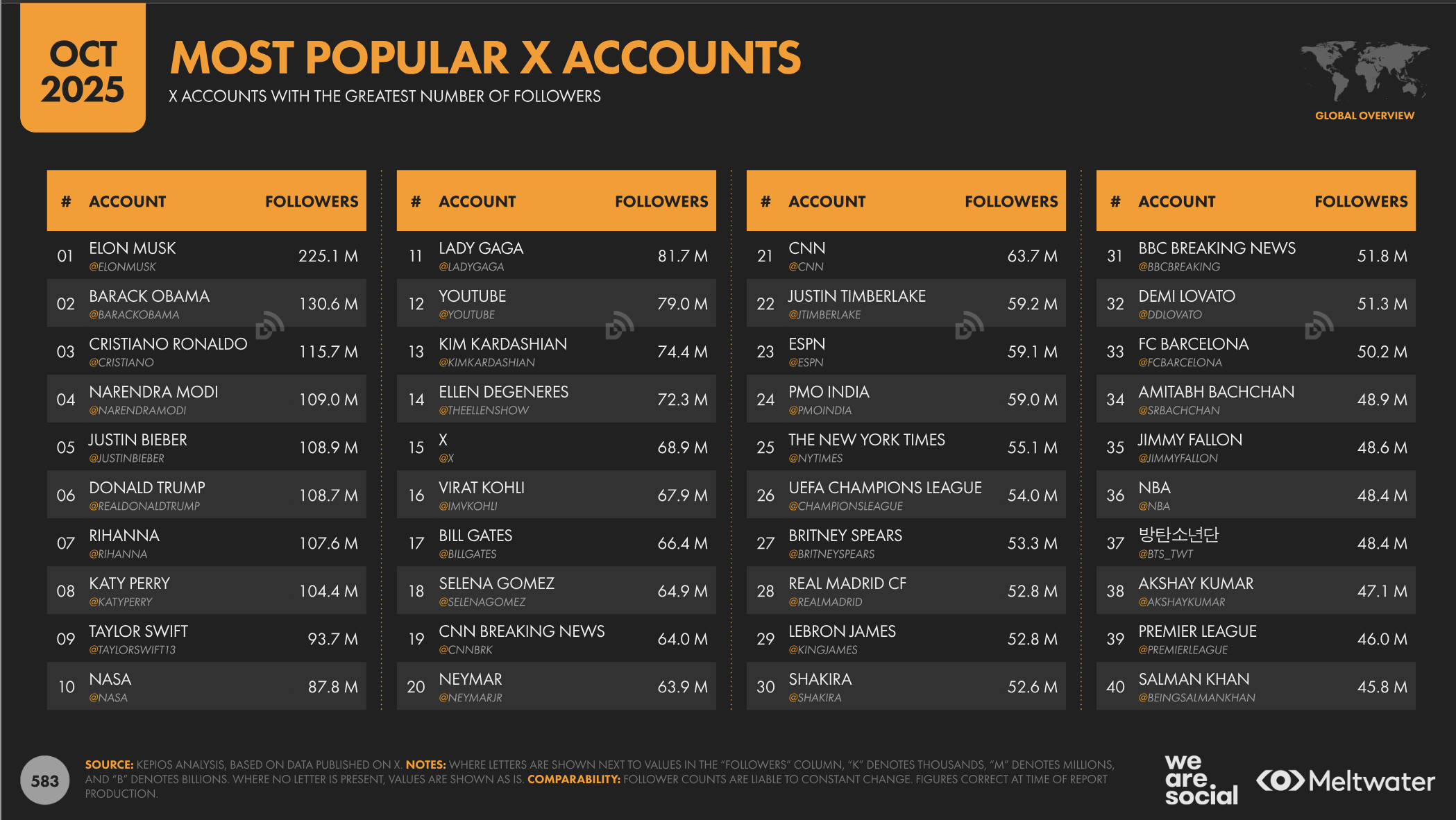 Les comptes X les plus suivis dans le monde