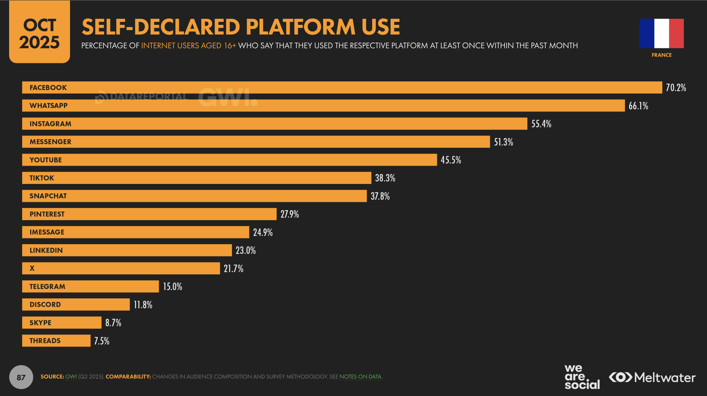 Source : Rapport We Are Social/Meltwater (étude réalisée sur les utilisateurs âgés de 16 à 64 ans)