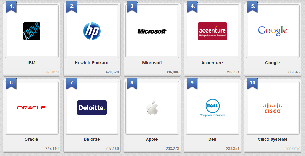 Zoomsphere, qui nous avait déjà offert un classement des pages Google Plus les plus populaires, s’attaque désormais à LinkedIn. Encore peu utilisées en France, ces pages permettent aux entreprises de bénéficier d’une page officielle sur le réseau social professionnel pour se présenter et publier de l’information, le tout gratuitement. Chose qui n ‘est pas encore possible sur Viadéo, qui a choisi une option plus agressive obligeant les entreprises à sortir le portefeuille pour avoir un espace à elles. Ce classement est intéressant car il repose sur deux facteurs. D’une part, le nombre d’employés de chaque société présents sur LinkedIn. Ces derniers font automatiquement partie des « followers » de la page. L’autre partie de ces abonnés a par contre fait le choix de suivre les mises à jour de ces entreprises. Cette fameuse liste permet donc d’y voir plus clair à la fois dans les sociétés et les secteurs les plus fortement implantées, mais aussi dans celles qui suscitent le plus d’intérêt. Et sans surprise, c’est l’informatique et Internet qui dominent très largement les débats…