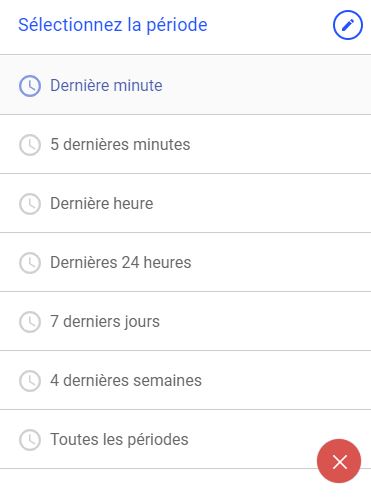 Sous cette liste, un menu déroulant vous permet de configurer la période sur laquelle vous souhaitez appliquer cette opération : dernière minute, les 5 dernières minutes, la dernière heure, les dernières 24 heures, les 7 derniers jours, les 4 dernières semaines ou toutes les périodes. Il s’agit là du paramètre par défaut.