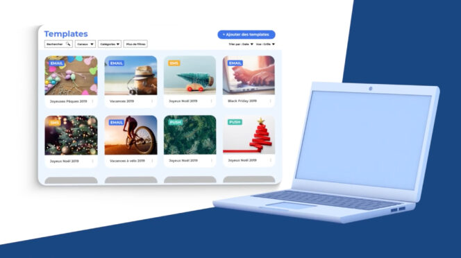 La plateforme dispose d’un catalogue de templates de mails, de push, ou de SMS pour vous faire gagner du temps. Ces templates s’adaptent aux différents moments forts pendant lesquels les promotions sont envoyées : Noël, anniversaires, black friday… Ils sont évidemment totalement personnalisables via un éditeur, et vous pouvez créer vos propres templates from scratch. L’éditeur est très bien conçu et permet d’avoir un rendu visuel des messages envoyés quel que soit le format.