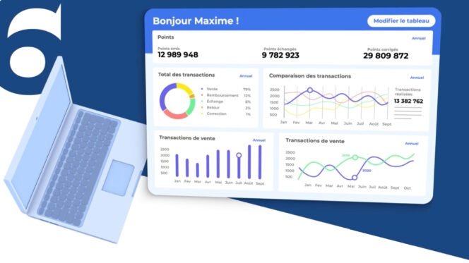 Un dashboard vous permet de suivre en temps réel vos performances : transactions, ventes, points échangés… Le dashboard est personnalisable et s’adapte aux KPIs que vous souhaitez monitorer.