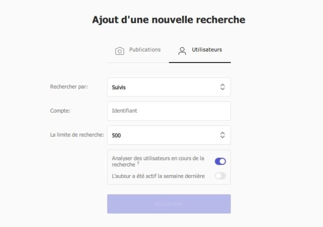 Autre outil de recherche proposé par Combin : la recherche d’utilisateurs. Combin vous permet de faire une recherche des abonnés d’un compte, des comptes suivis par un compte, des commentateurs d’un compte ou des likers des publications d’un compte. Tout cela permet de trouver très facilement avec quelles publications, ou avec quels comptes avoir des interactions.