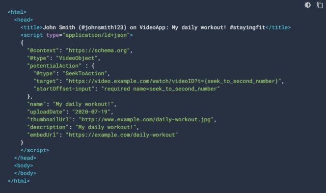 Aujourd’hui prise en compte par Google pour tous les sites contenant des vidéos, le balisage SeekToAction est à intégrer dans les données structurées « Video0bject ».