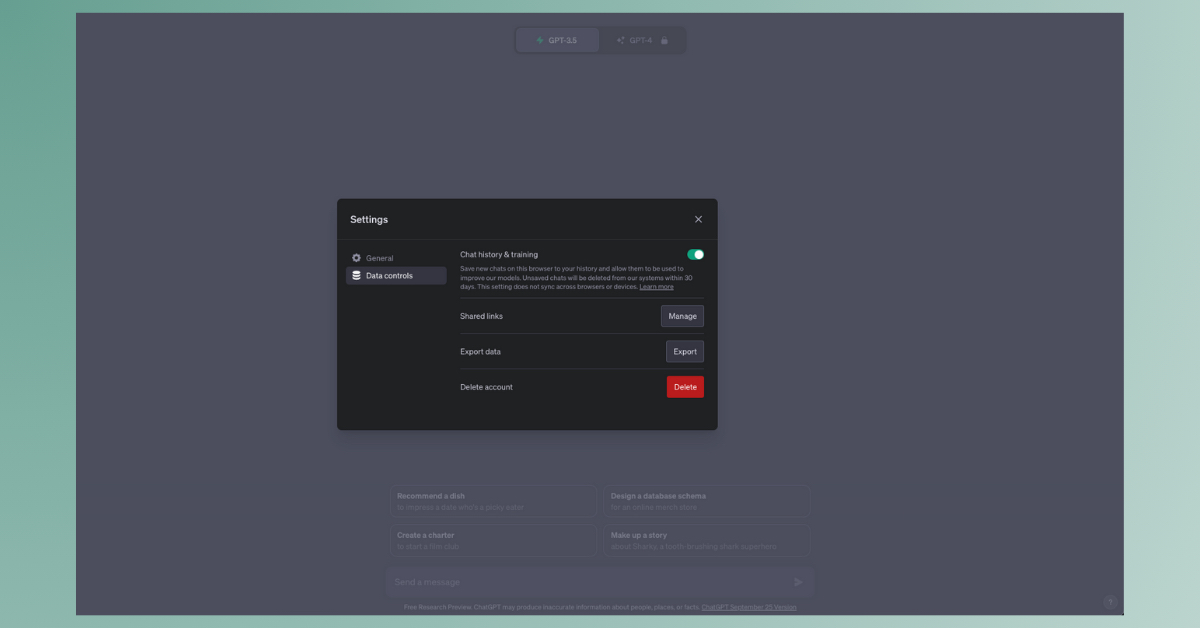 Les contrôles de données vous offrent la possibilité de désactiver l’historique des discussions et de choisir facilement si vos conversations seront utilisées pour entraîner nos modèles, lit-on sur la FAQ d’OpenAI.