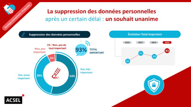 Un chiffre à retenir : 93 % des Français souhaiteraient que leurs données personnelles soient supprimées après un certain délai. Plus de la moitié (54 %) pensent que ce sujet est « très important ».