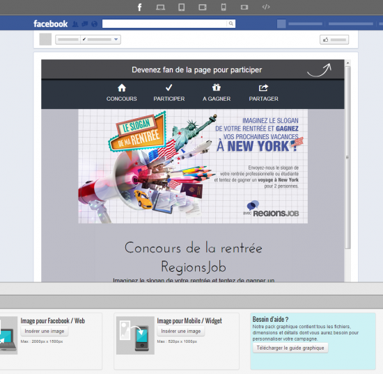 La description du concours est une étape importante, elle est en effet « l’identité » de votre opération. Choisissez donc bien les différents éléments à remplir : titre, description du concours, message d’information, message de remerciement, catégorie, ainsi que la date du concours ou le pays. Toutes ces données sont très classiques et se remplissent très vite.